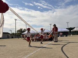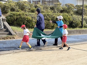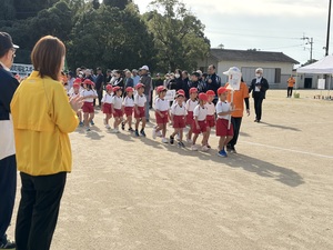 入場行進、開会式を終えたあとは、こどもの丘保育園の年長さんと
