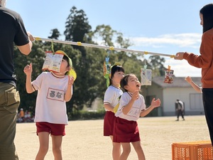 吊るされたお菓子を口や手でキャッチしてゴールする全員参加の競技です。